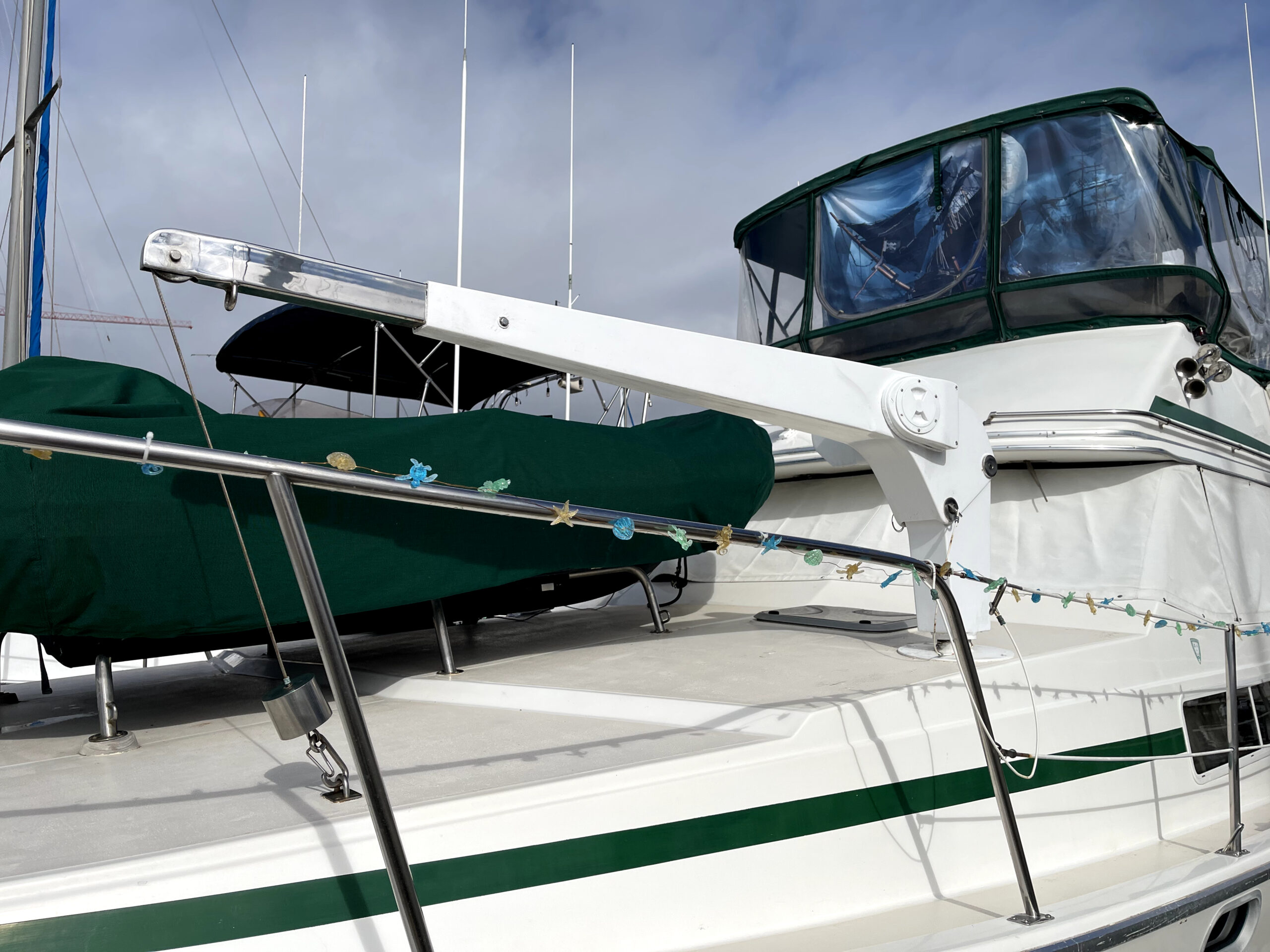 The Nick Jackson Co. 600lb Low Profile Davits are a type of boat lifting system designed for handling smaller vessels or dinghies on larger boats, such as your Bayliner 3888 motor yacht. These davits allow users to safely and efficiently lift, lower, and secure tenders or other equipment on and off the water. Here’s an overview of the key features and functionality: