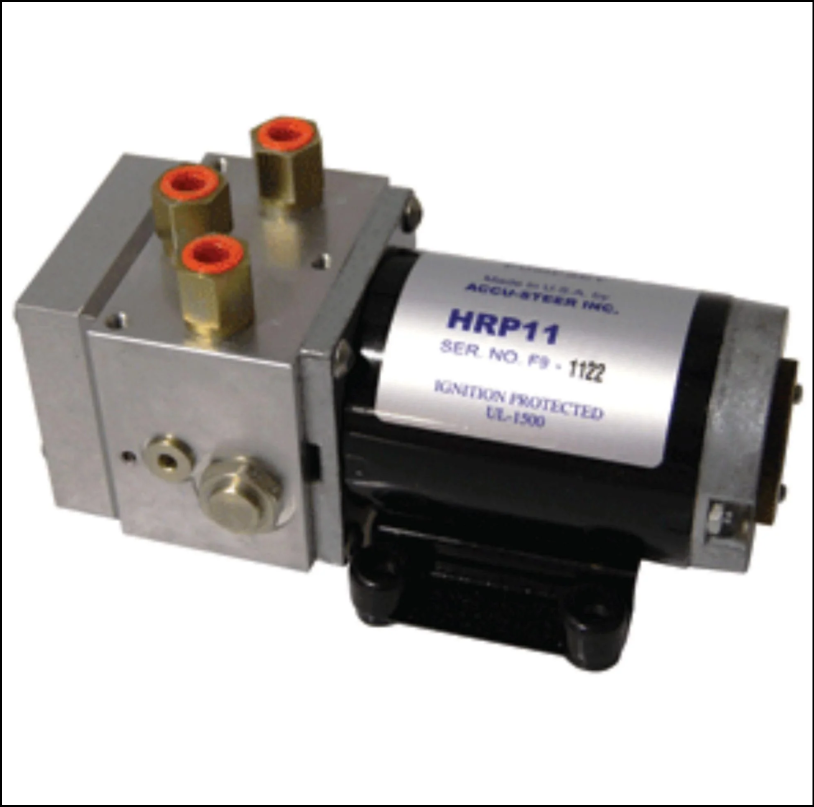 The Accu-Steer HRP Series pump sets are designed to interface hydraulic steering systems with autopilot and electric steering controls. The output flow from the pump set determines the speed of the rudder. These three pumps interface with most autopilots.